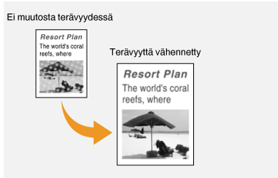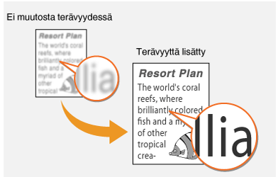 | | Voit säätää kuvan terävyyttä. Lisää terävyyttä, kun haluat tarkentaa sumeaa tekstiä tai viivoja, tai vähennä terävyyttä, kun haluat parantaa lehtikuvien ulkoasua. Terävyyden säätäminen |