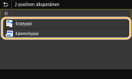 Valitse <Lähetys-/vast.as.> välilehdessä <2-puolinen alkup.>