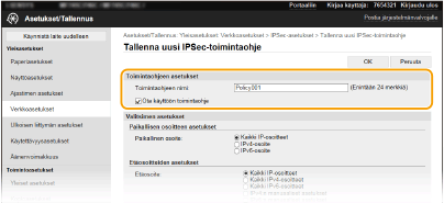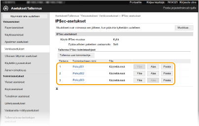 Järjestä kohdassa [Tallenna IPSec-toimintaohjeet] luetellut käytännöt.