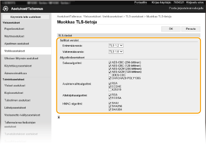 : ei käytettävissäAlgoritmi | TLS-versio | |||