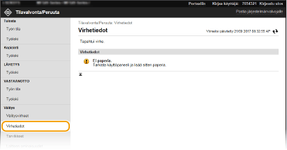 [Työn tila] kohdassa [VASTAANOTTO]![]() |