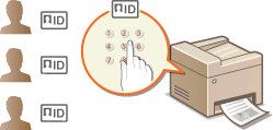 Voit valvoa laitteen käyttöä käyttämällä eri tunnuksia eri käyttäjille tai ryhmille. Jos käyttäjä yrittää käyttää laitetta, kun osastotunnusten hallinta on käytössä, kirjautumisnäyttö näytetään ja käyttäjän on annettava oma osastotunnuksensa ja PIN-koodinsa, jotta hän voi käyttää laitetta. Kun osastotunnusten hallinta on käytössä, toimintojen, kuten tulostuksen, käyttö tallennetaan osastotunnuksittain. Kun haluat määrittää osastotunnusten hallinnan, tallenna tarvittavat osastotunnukset ja ota käyttöön osastotunnusten hallintatoiminto. Jos haluat ottaa osastotunnusten hallinnan käyttöön tietokoneesta tehdyille toiminnoille, sinun täytyy määrittää lisäasetuksia tietokoneessa.