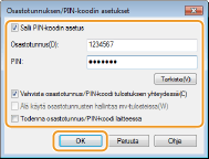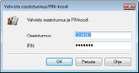 Vahvista tätä napsauttamalla, että on syötetty oikea tunnus ja PIN. Tämä toiminto ei ole käytettävissä, mikäli laite ja tietokone on yhdistetty USB- tai WSD (Web Services on Devices) -portin välityksellä.