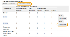 [Osastotunnuksien kokonaismäärä]Voit tarkistaa kunkin osastotunnuksen suoritettujen töiden sivujen tähänastiset kokonaismäärät.