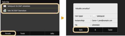 Alkuperäiset on skannattu, ja ne odottavat käsittelyä. Valitse peruutettava asiakirja ja valitse <Peruuta> <Kyllä>.