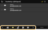 Jos vastaanottaja valitaan Koti-näytön kohdasta <Osoitekirja>, sähköpostin lähetyksen tai tiedoston tallennuksen perusominaisuudet-näyttö voidaan näyttää samalla, kun valittu vastaanottaja pysyy määritettynä. |