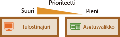 Asteriskit (*)Asetuksia, joissa on merkintä "*1" ei välttämättä näytetä käytettävän mallin, lisävarusteiden tai muiden asetusten mukaan. Asetuksia, joissa on merkintä "*2", ei voi tuoda tai viedä. Asetusten ensisijaisuusJos tulostusasetus määritetään sekä tulostinajurissa että laitteen käyttöpaneelissa, tulostinajurissa tehty määritys menee käyttöpaneelissa tehdyn edelle. Käyttöpaneelissa tehty määritys tulee voimaan tietyissä erityistapauksissa, esimerkiksi kun suoritetaan PS/PCL-tulostusta ja tulostetaan UNIX- tai muusta käyttöjärjestelmästä, joka ei tue tulostinajureita. |