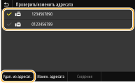 2 | Установите флажок для адресата, которого требуется удалить, и выберите <Удал. из адресат.>. ![]() ![]() Если установлен флажок «Групповой набор», зарегистрированных в группе адресатов можно посмотреть, выбрав <Сведения> <Адресат>. |