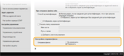 [Не разрешать] | Отправка сообщений электронной почты и интернет-факсов блокируется. При сканировании невозможно использовать пункты <Электронная почта> и <И-факс>. |
