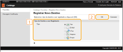 Selecione o tipo de destino a registar e clique em [OK].