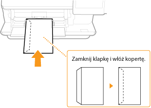Załaduj koperty Monarch, COM10, DL lub ISO-C5 w orientacji pionowej (krótsze krawędzie powinny znajdować frontem) niezaklejoną stroną (przednią) do góry. Nie można drukować na tylnej stronie kopert.