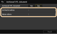 Ak nepoužívate funkciu archivovania odoslaných dokumentov, vyberte položku <Vyp.>.