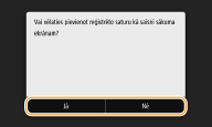 Ja izvēlēsities <Jā>, tiks parādīts ziņojums. Skatiet ziņojumu un pēc tam izvēlieties <Labi>. Reģistrēto iestatījumu kombinācija tiks pievienota ekrānā Sākums kā īsinājumpoga.