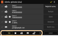 Adrešu grāmatā varat reģistrēt bieži izmantotos faksa/skenēšanas adresātus un nepieciešamības gadījumā tos ērti izvēlēties (Adresātu reģistrēšana adrešu grāmatā). Adresātus var meklēt alfabēta secībā adrešu grāmatas sarakstos vai ievadot trīsciparu numurus (kodētā numuru sastādīšana). Adresātus varat arī ātri norādīt, izmantojot tālāk aprakstītās funkcijas.