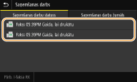 Varat drukāt RX rezultātu pārskatus ikreiz, kad dokumenti tiek saglabāti atmiņā. Lai drukātu pārskatus, izvēlieties <Iesl.>. Opcija <Saņemšanas rezultātu atskaite> ir jāiestata pozīcijā <Iesl.>.