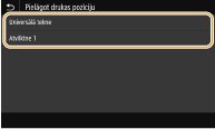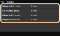 Ja dokuments tiek drukāts ar nobīdi no centra vai ārpus apdrukājamā diapazona, pielāgojiet drukāšanas pozīciju. Varat pielāgot drukāšanas pozīciju katram papīra avotam. Varat pielāgot drukāšanas pozīciju diapazonā no -5,0 mm līdz +5,0 mm ar soli 0,1 mm.