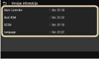 Aparātprogrammatūras versiju var pārbaudīt arī iekārtas darbības panelī. Pēc aparātprogrammatūras atjaunināšanas pabeigšanas pārbaudiet, vai atjaunināšana tika veikta pareizi. Aparātprogrammatūras versijas pārbaude