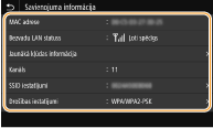 Var izdrukāt pašreizējo tīkla iestatījumu sarakstu. Lietotāja datu saraksts/sistēmas pārvaldnieka datu saraksts
