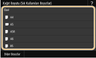 Yüklü kağıt boyutu görüntülenmiyorsa, <Diğer Boyutlar> öğesini seçin.