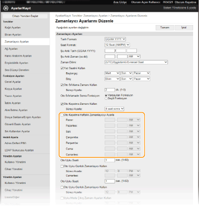 *Güç belirlenen zamanda otomatik olarak kapatılamıyorsa, bir dakikalık aralıklarla on kez yeniden deneme gerçekleştirilir. Güç on yeniden denemenin ardından da kapatılamıyorsa, otomatik kapatma o gün için olanaksız kabul edilir.
