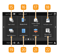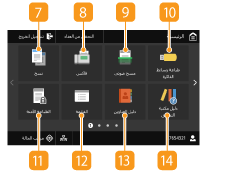 في لوحة التشغيل. استخدم هذه الشاشة لتحديد الإعدادات وتسجيل الوظائف.