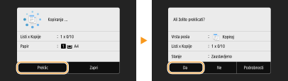 Če želite kopiranje preklicati takoj, izberete <Začni>, na zaslonu izberite <Preklic> ali pa na operacijski plošči pritisnite