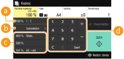 Kopije lahko povečate ali pomanjšate z uporabo vnaprej nastavljenega razmerja kopiranja, na primer <A5->A4>, ali z nastavitvijo uporabniškega razmerja kopiranja v korakih po 1 %.