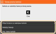 Kot odstotek preostale količine v kartuši s tonerjem, ki sproži sporočilo, lahko nastavite katero koli vrednost. <Prikaz časa za pripravo kart.>