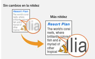 ![]() | Puede ajustar la nitidez de la imagen. Aumente la nitidez para que las líneas y los textos borrosos se vean con mayor claridad o disminúyala para mejorar el aspecto de las fotos de revistas. |