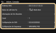 <Status da LAN Sem Fio> e <Informações de Erro Recentes> podem ser visualizados em <Monitor Status>.