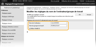Cochez cette case pour utiliser NetBIOS.