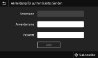 Wenn die Autorisierungseinstellung für die Sendefunktion (LDAP-Serverauthentisierung) aktiviert ist, wird der Anmeldebildschirm für das Autorisierte Senden angezeigt, wenn die Fax- oder Scanfunktion verwendet wird.