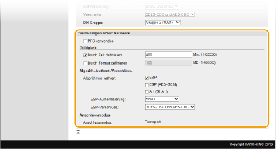 Legen Sie die Einstellungen für [Gültig für] und [Authentisierung]/[Verschlüss.]/[DH-Gruppe] fest.
