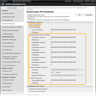 Zustandshafte Adresse | Eine solche Adresse wird mittels DHCPv6 von einem DHCP-Server abgerufen. |