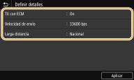 Creación de opciones detalladas (solamente cuando se registren para fax)