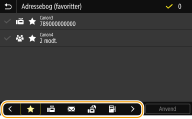 | | Med adressebogen kan du angive en destination ved at vælge fra en liste over registrerede destinationer eller ved at søge efter navn for destinationer med modtagernavne. |