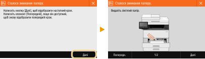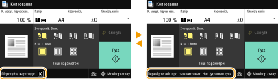 Повідомлення відображаються на екрані, якщо бракує паперу, завершується термін служби тонера в картриджі тощо. Для отримання додаткової інформації див. розділ «Усунення несправностей (FAQ)» на веб-сайті електронного посібника.