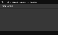 Відображає докладні відомості про будь-які помилки, що сталися. Для отримання додаткової інформації див. розділ «Усунення несправностей (FAQ)» на веб-сайті електронного посібника.