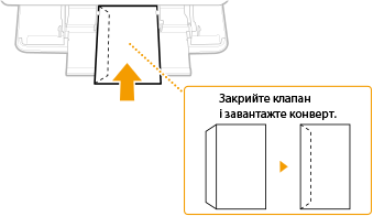 Завантажуйте конверти так, щоб сторона з клапаном конверта була зліва, як це показано на зображенні.