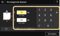 2 | Укажіть довжину сторін <X> і <Y>. Виберіть <X> або <Y> і введіть довжину кожної сторони за допомогою цифрових клавіш. ![]() ![]() Якщо зареєструвати часто використовуваний формат паперу на кнопках <S1>-<S3>, їх можна викликати одним дотиком. Реєстрація нестандартного формату паперу |