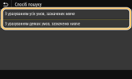 4 | Введіть рядок символів для пошуку та виберіть елемент <Застосувати>. Інформацію про введення тексту див. в розділі Введення тексту. Щоб указати кілька критеріїв пошуку, повторіть кроки 3 та 4. |
