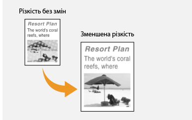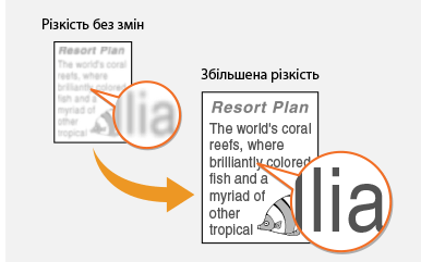 Можна налаштувати різкість зображення копії. Збільште різкість, щоб збільшити різкість тексту та ліній, або зменште її, щоб покращити зовнішній вигляд фотографій із журналу.