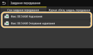 Перевірка станів надісланих і отриманих документів1 | На вкладці <Стан завдання передавання> або <Стан завдання отримання> виберіть документ, стан якого потрібно перевірити. ![]() Відображає докладні відомості про документ. Якщо було зазначено кілька адресатів, то на екрані відобразиться кількість указаних адресатів. Щоб перевірити дані кількох вибраних адресатів, виберіть елемент <Адресат>. |