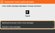 <Завершення строку служби картриджа>