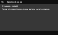 Екран ГоловнийНеможливо перейти до наступного кроку, якщо відображається наведений нижче екран <Remote Scanner>. У такому випадку виберіть елемент