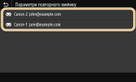 ![]() | Можна вибирати адресата з останніх одержувачів. Якщо вказати одного з адресатів, що вже використовувалися, апарат установить ті самі параметри сканування (наприклад, насиченість), що використовувалися минулого разу для надсилання документів цьому адресатові. |