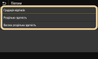 За допомогою параметра <Точне настроювання> можна налаштувати три рівні щільності тонера: високий, середній і низький. |