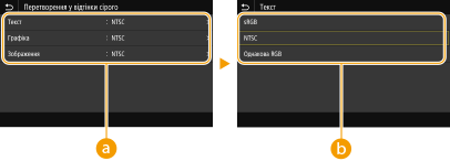 <Текст> <sRGB> <NTSC>  <Однакова RGB> <Графіка> <sRGB> <NTSC>  <Однакова RGB> <Зображення> <sRGB> <NTSC>  <Однакова RGB> |