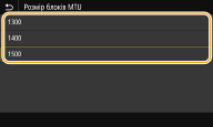 У більшості мереж Ethernet максимальний розмір пакета для пересилання становить 1500 байтів. Пакет – це порція даних, на які розбиваються початкові дані перед надсиланням. Максимальний розмір пакета даних (maximum transmission unit – MTU) може відрізнятися залежно від мережі. За потреби змініть параметри апарата. Для отримання докладнішої інформації зверніться до адміністратора мережі.