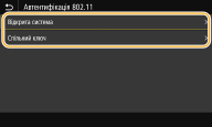 2 | Виберіть спосіб автентифікації. ![]() <Відкрита система> Встановлює відкриту систему автентифікації, яку також називають «відкрита автентифікація». <Спільний ключ> Використовує ключ шифрування як пароль. ![]() Якщо вибрано значення <Відкрита система> Якщо на маршрутизаторі бездротової локальної мережі встановлено спільний ключ автентифікації, під час підключення апарата до бездротової локальної мережі може виникнути помилка автентифікації. Якщо таке станеться, апарат автоматично змінить цей параметр на <Спільний ключ> і повторить спробу підключення. |
